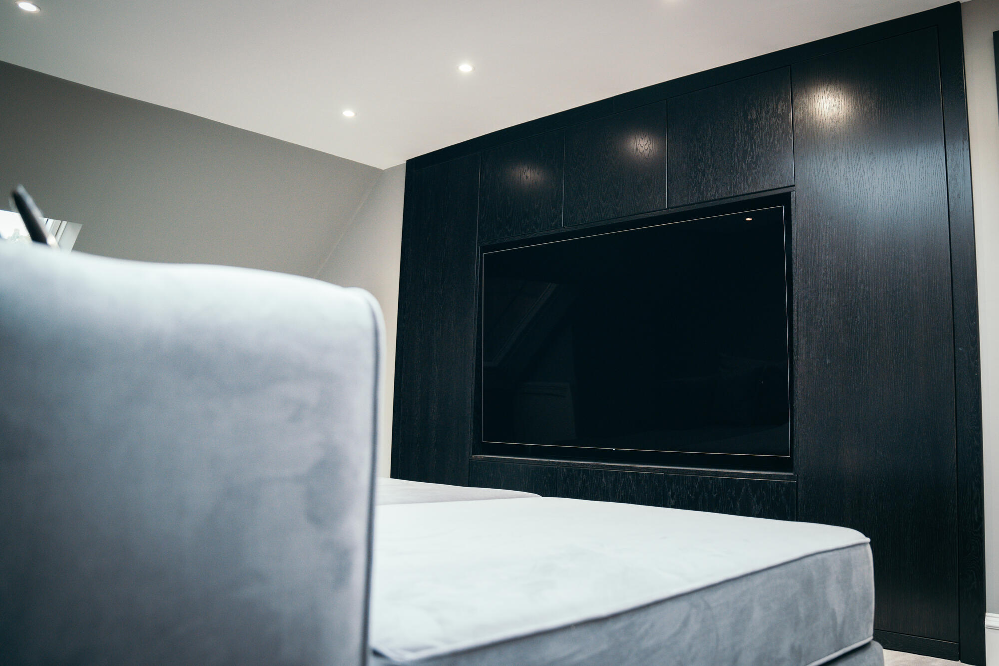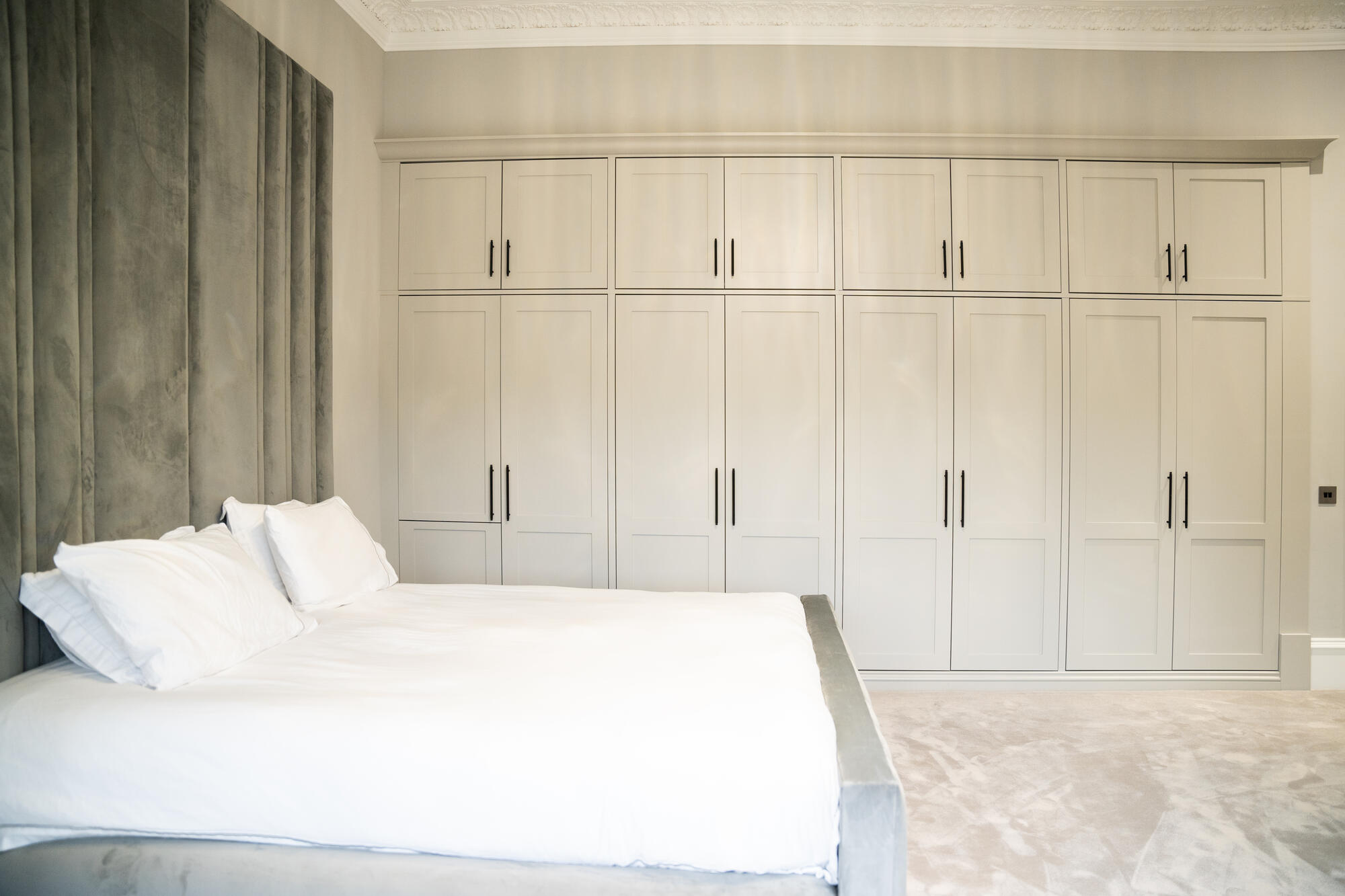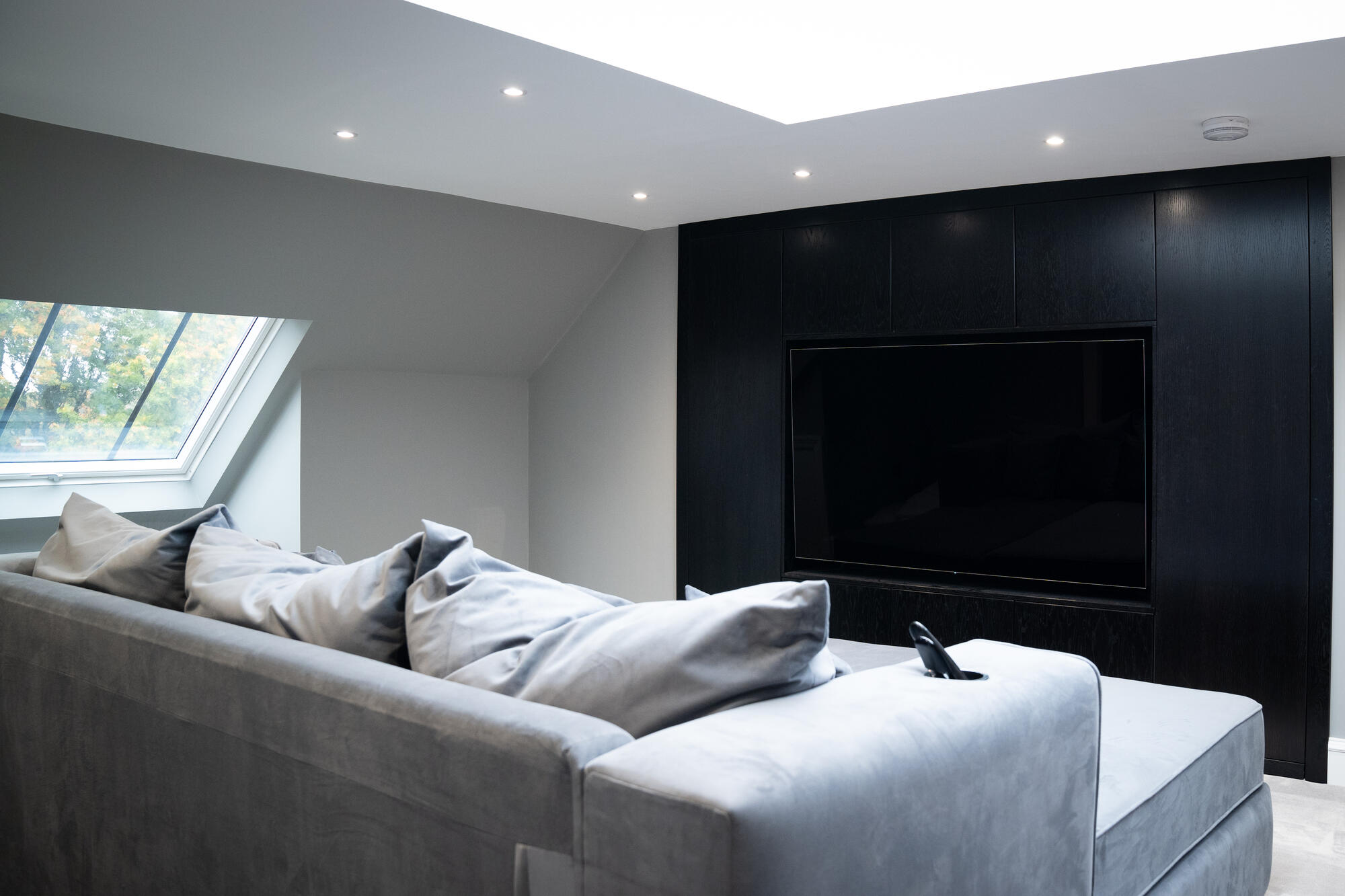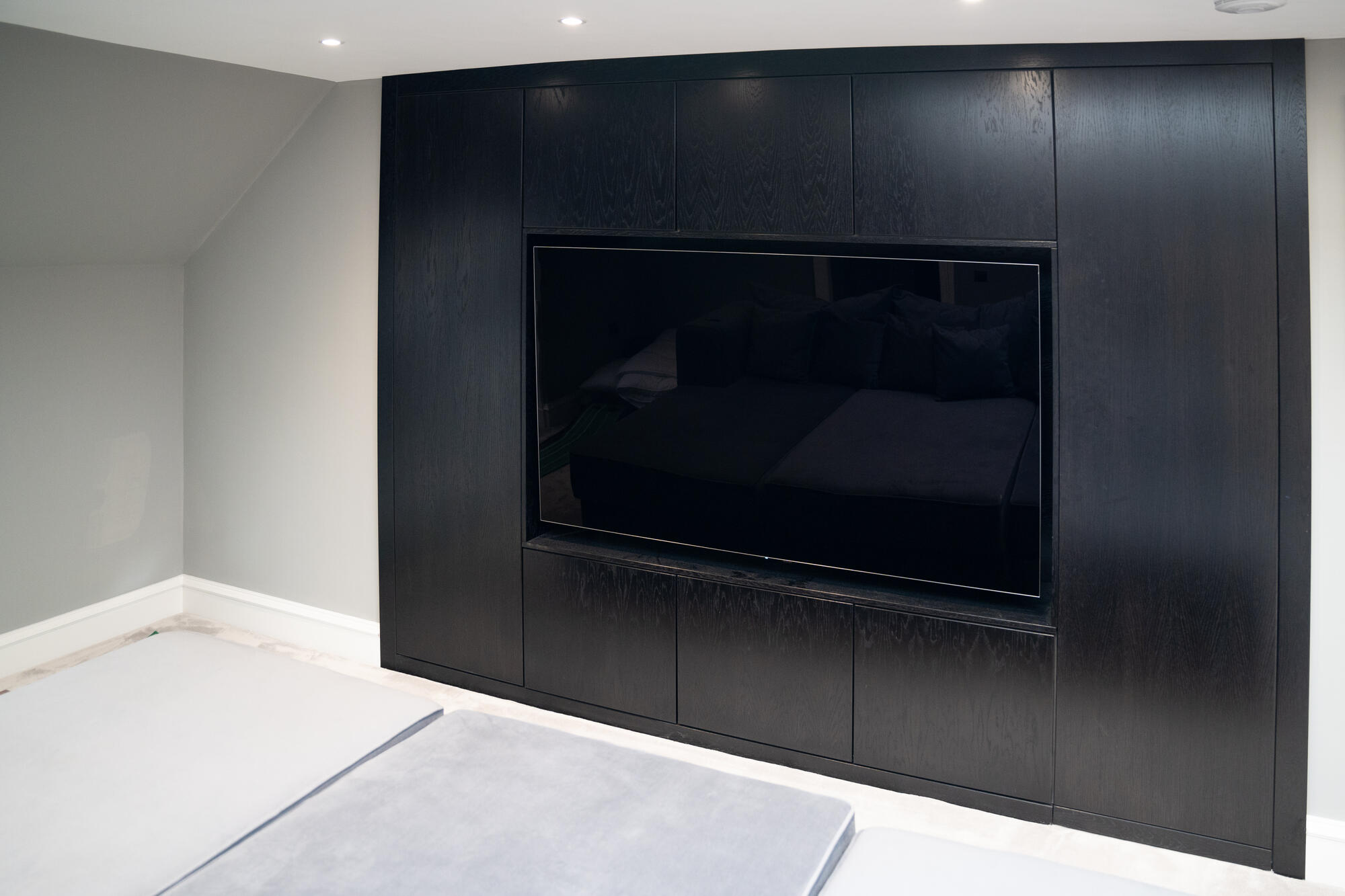 Ingrained Bespoke was commissioned to deliver a complete joinery package across the entire home—carefully tailored to the family’s lifestyle. The project included three full-height wardrobes, a luxury dressing room, two bespoke media units, a home bar, a feature wine rack, and several smaller details that pulled the interiors together.
