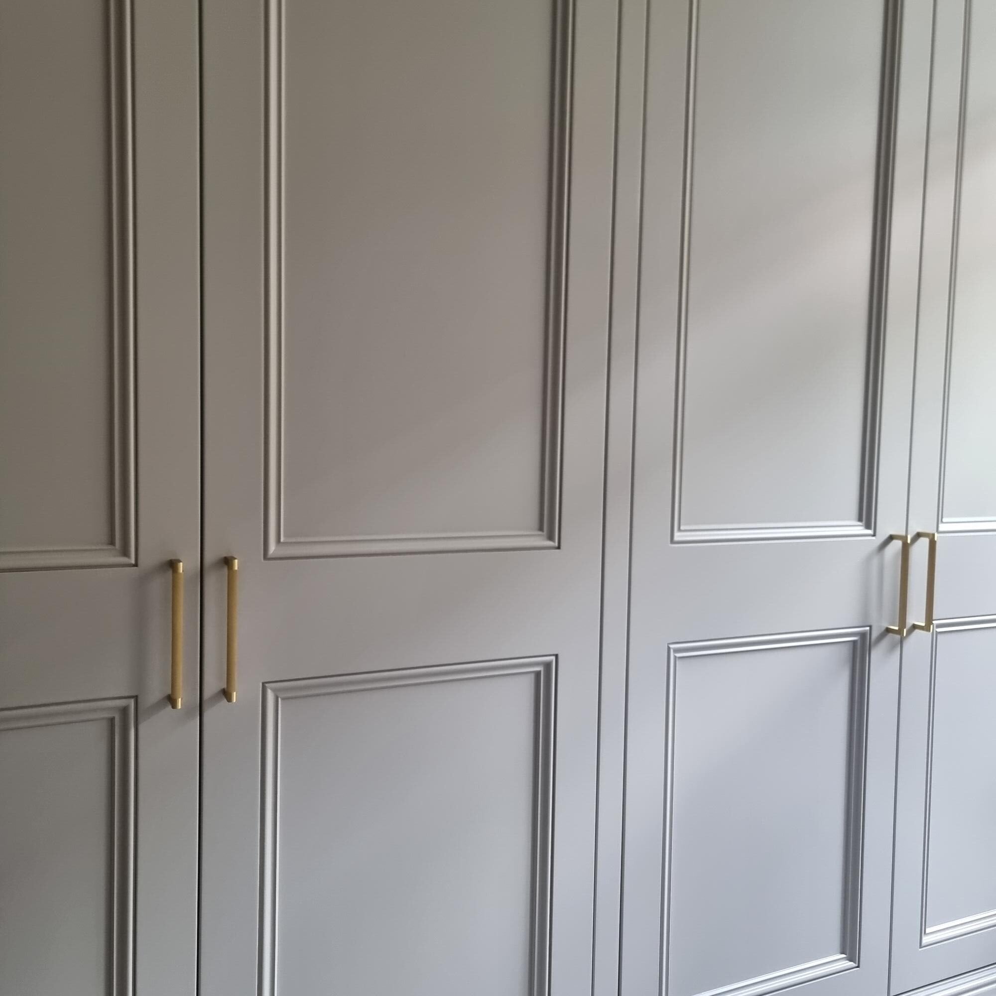 Above, brass hanging rails introduce a warm metallic accent, tying together tradition and contemporary design. From the exterior detailing to the thoughtful internal layout, every element was created with care—ensuring this wardrobe feels both refined and ready for daily use.