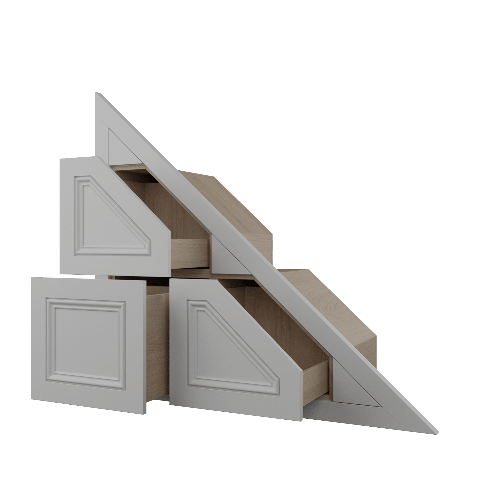 This beaded shaker style understairs storage unit features 3 drawers unfinished. It’s designed to fit neatly under your stairs, offering practical and attractive storage for shoes, bags, toys, and other household items. Supplied unfinished, it’s ready for you to paint at home.