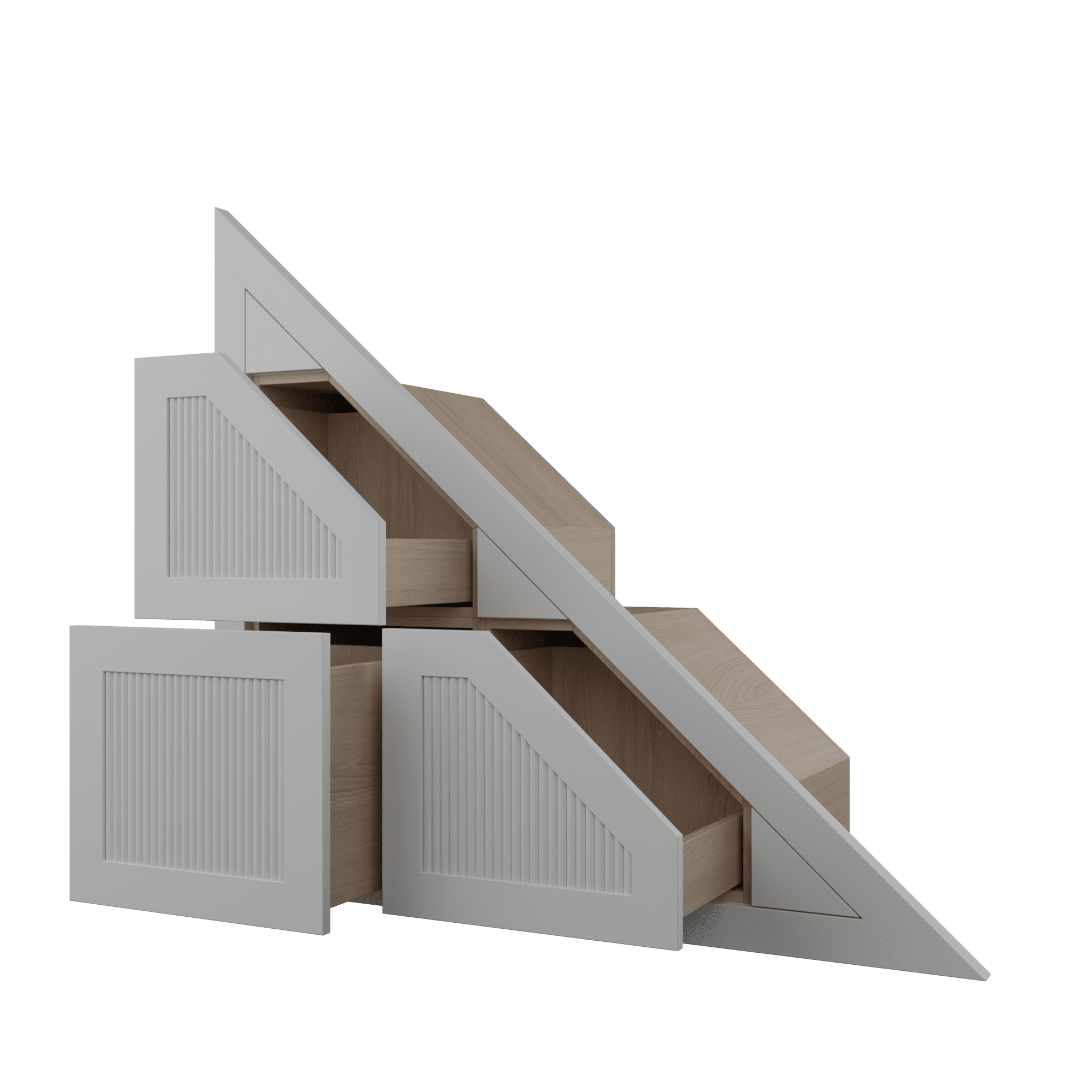This reeded shaker style understairs storage unit features 3 drawers unfinished. It’s designed to fit neatly under your stairs, offering practical and attractive storage for shoes, bags, toys, and other household items. Supplied unfinished, it’s ready for you to paint at home.