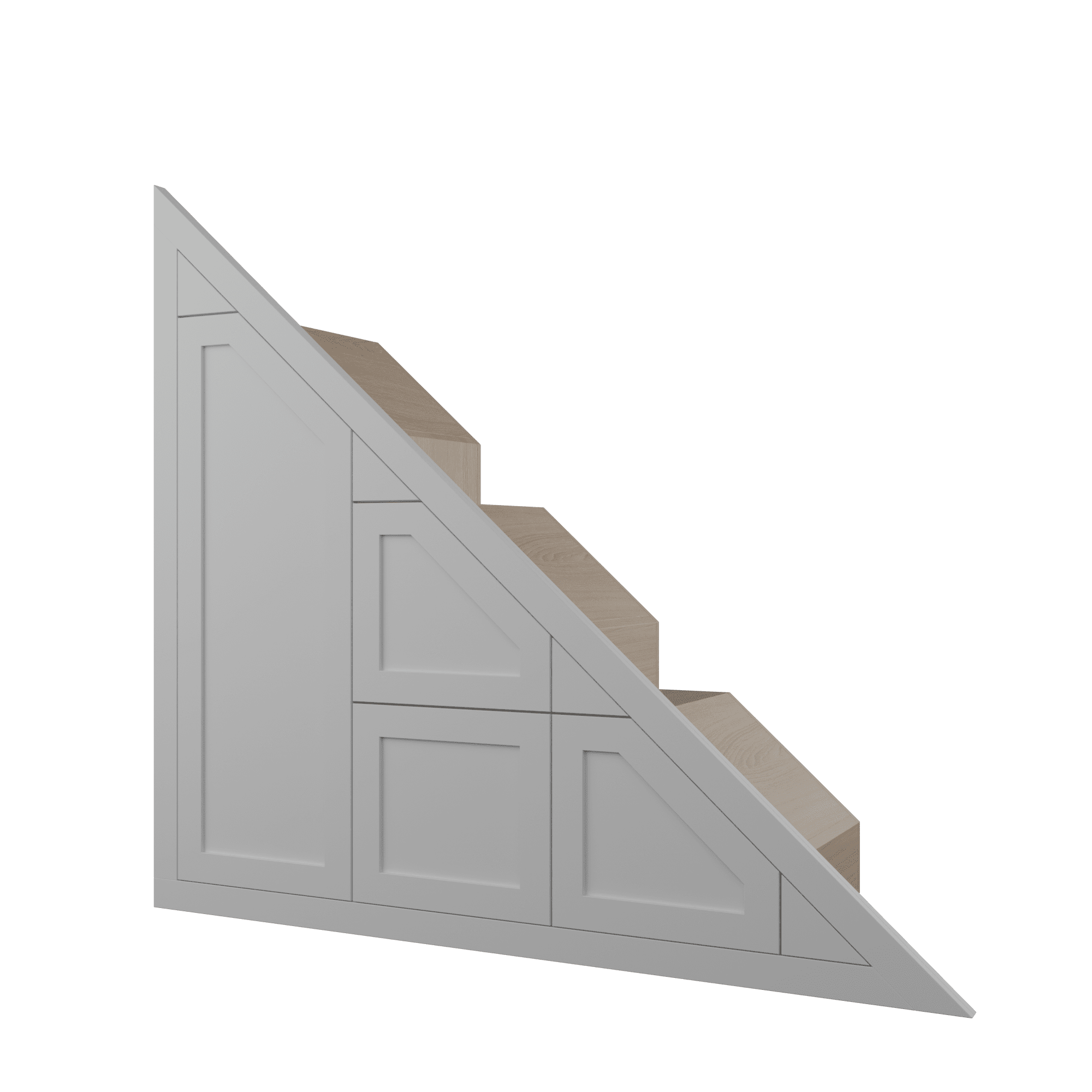 This shaker style understairs storage unit features 3 drawers one cupboard unfinished. It’s designed to fit neatly under your stairs, offering practical and attractive storage for shoes, bags, toys, and other household items. Supplied unfinished, it’s ready for you to paint at home.