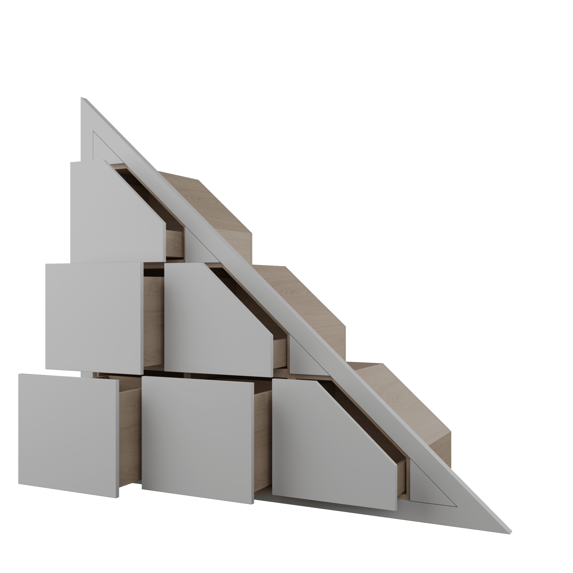 This slab style understairs storage unit features 6 drawers unfinished. It’s designed to fit neatly under your stairs, offering practical and attractive storage for shoes, bags, toys, and other household items. Supplied unfinished, it’s ready for you to paint at home.
